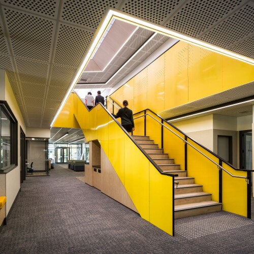 Project: Jasmax Architects specified Asona’s Triton Hygiene™ ceiling panels to fit between the ventilation system & exposed concrete beams of the Albany High School’s new food tech rooms.